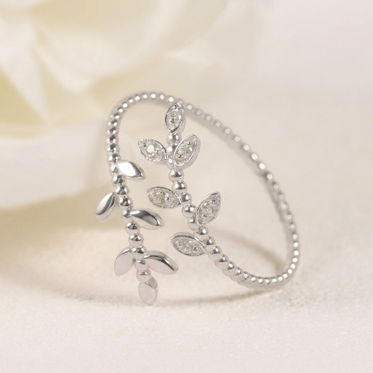 Minimalist Moissanite Leafy Vine Stacking Ring