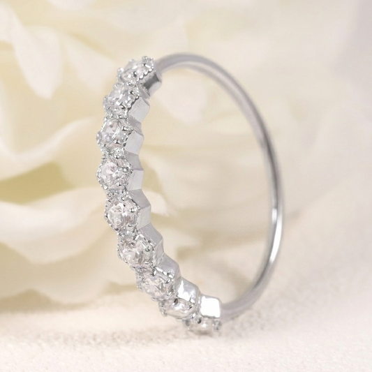 Luminous Sterling Silver Moissanite Hexagonal Stacking Ring