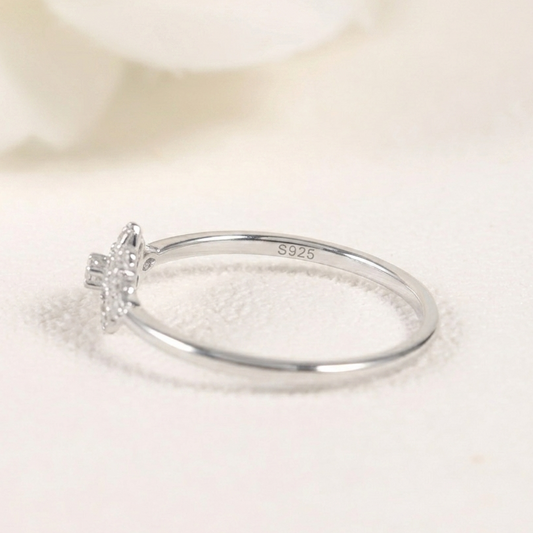 Petite Moissanite Floral Stacking Ring in Sterling Silver