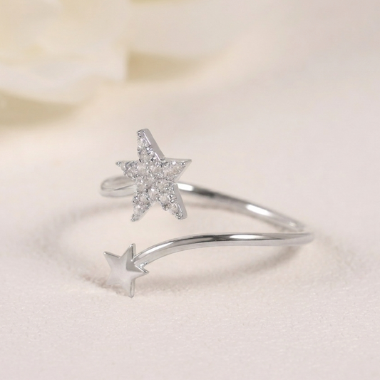 Sterling Silver Moissanite Twin Star Stacking Ring