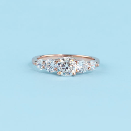 Eternal Brilliance Five-Stone Cushion Cut Moissanite Engagement Ring Set in 9ct Rose Gold