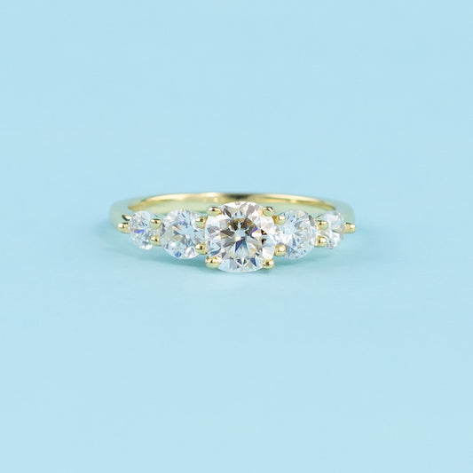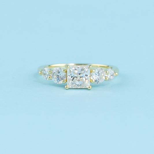 Eternal Brilliance Five-Stone Princess Cut Moissanite Engagement Ring Set in 9ct Yellow Gold