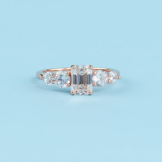 Eternal Brilliance Five-Stone Emerald Cut Moissanite Engagement Ring Set in 9ct Rose Gold