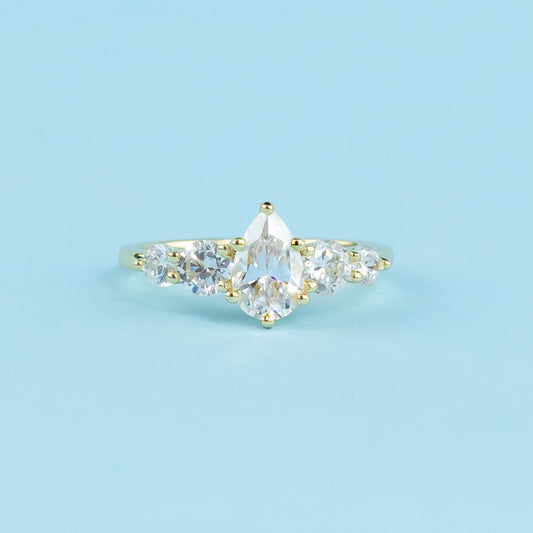 Eternal Brilliance Five-Stone Pear Shape Moissanite Engagement Ring Set in 9ct Yellow Gold