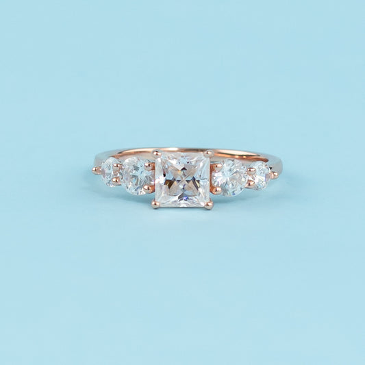Eternal Brilliance Five-Stone Princess Cut Moissanite Engagement Ring Set in 9ct Rose Gold