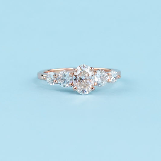 Eternal Brilliance Five-Stone Oval Cut Moissanite Engagement Ring Set in 9ct Rose Gold