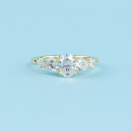 Eternal Brilliance Five-Stone Oval Cut Moissanite Engagement Ring Set in 9ct Yellow Gold
