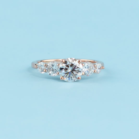 Eternal Brilliance Five-Stone Round Brilliant Moissanite Engagement Ring Set in 9ct Rose Gold