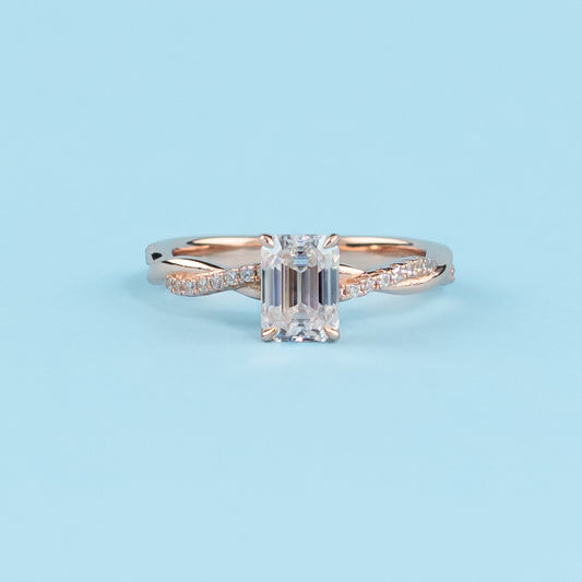 Timeless Infinity Emerald Cut Moissanite Engagement Ring Set in 9ct Rose Gold