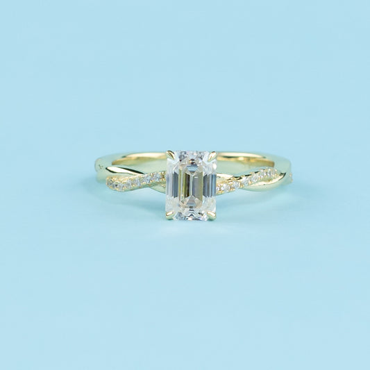 Timeless Infinity Emerald Cut Moissanite Engagement Ring Set in 9ct Yellow Gold