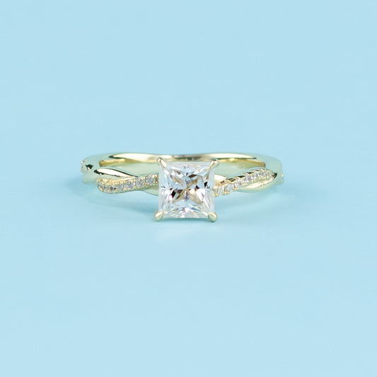 Timeless Infinity Princess Cut Moissanite Engagement Ring Set in 9ct Yellow Gold