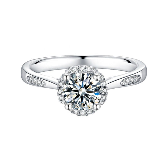 Modern Halo 1.00ct Moissanite Engagement Ring Set in 9ct White Gold