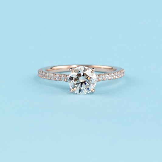 Hidden Elegance Round Brilliant Moissanite Engagement Ring Set in 9ct Rose Gold