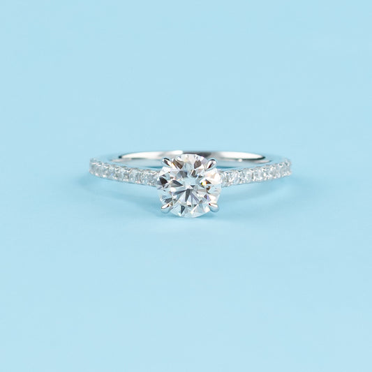 Hidden Elegance Round Brilliant Moissanite Engagement Ring Set in 9ct White Gold