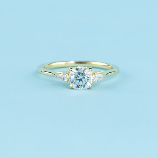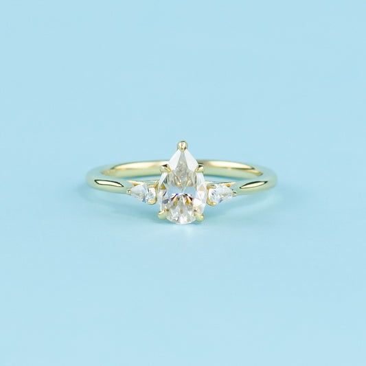 Infinite Love Trilogy Pear Shape Moissanite Engagement Ring Set in 9ct Yellow Gold