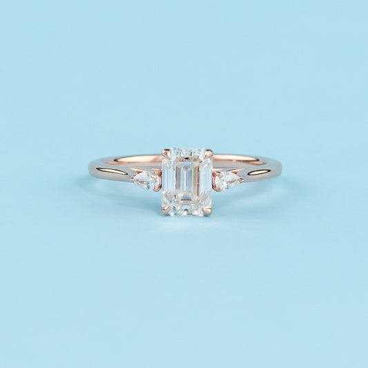 Infinite Love Trilogy Emerald Cut Moissanite Engagement Ring Set in 9ct Rose Gold