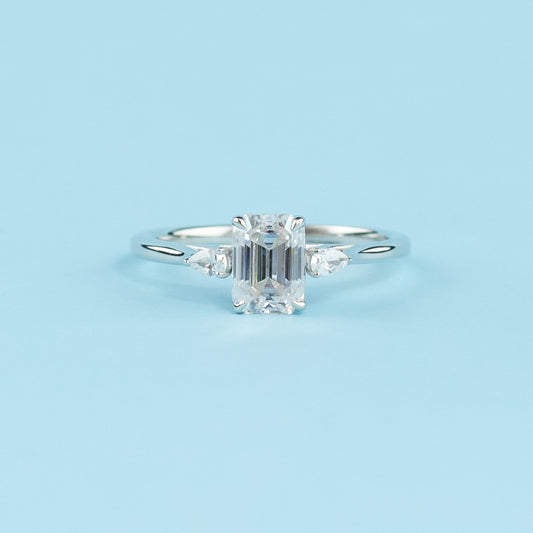 Infinite Love Trilogy Emerald Cut Moissanite Engagement Ring Set in 9ct White Gold