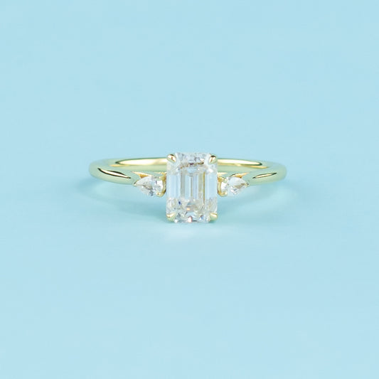 Infinite Love Trilogy Emerald Cut Moissanite Engagement Ring Set in 9ct Yellow Gold