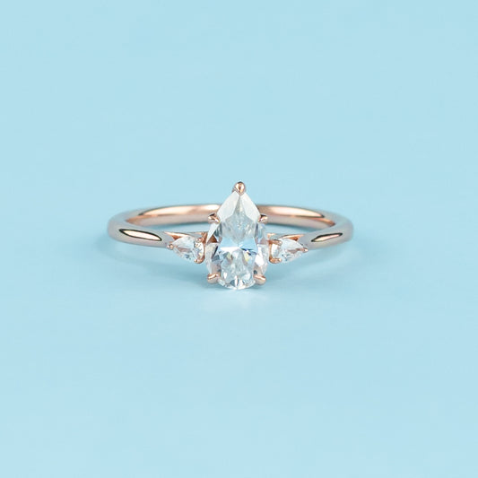 Infinite Love Trilogy Pear Shape Moissanite Engagement Ring Set in 9ct Rose Gold