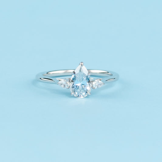 Infinite Love Trilogy Pear Shape Moissanite Engagement Ring Set in 9ct White Gold