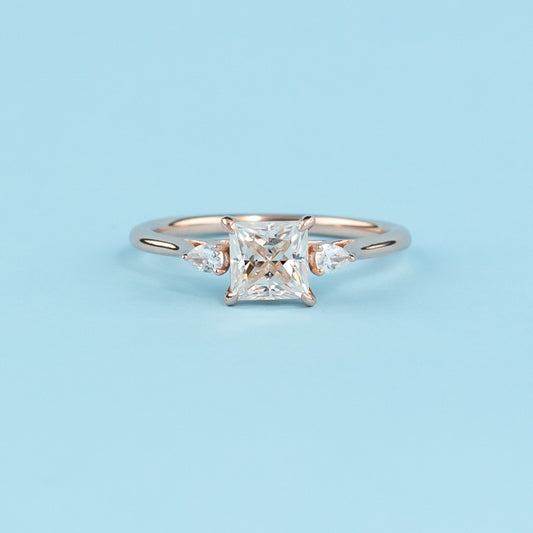 Infinite Love Trilogy Princess Cut Moissanite Engagement Ring Set in 9ct Rose Gold