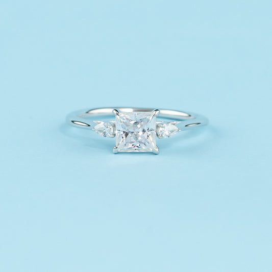 Infinite Love Trilogy Princess Cut Moissanite Engagement Ring Set in 9ct White Gold
