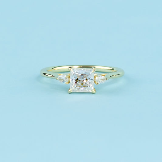 Infinite Love Trilogy Princess Cut Moissanite Engagement Ring Set in 9ct Yellow Gold