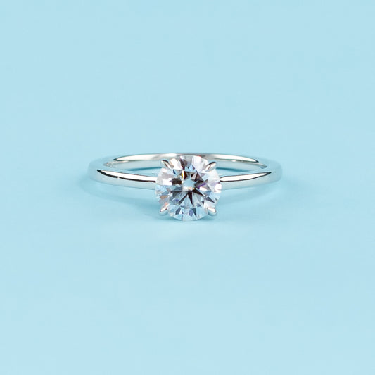 Secret Sparkle Hidden Halo Round Brilliant Moissanite Engagement Ring Set in 9ct White Gold