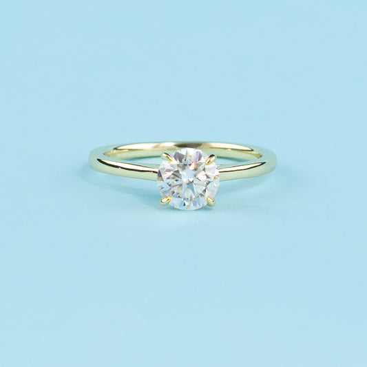 Secret Sparkle Hidden Halo Round Brilliant Moissanite Engagement Ring Set in 9ct Yellow Gold