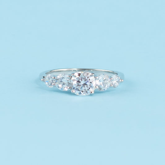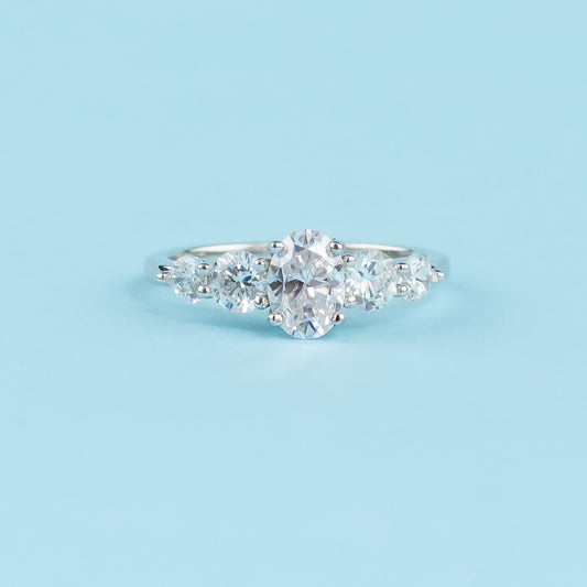 Eternal Brilliance Five-Stone Oval Cut Moissanite Engagement Ring Set in 9ct White Gold