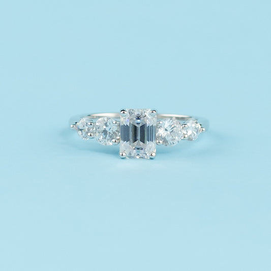 Eternal Brilliance Five-Stone Emerald Cut Moissanite Engagement Ring Set in 9ct White Gold