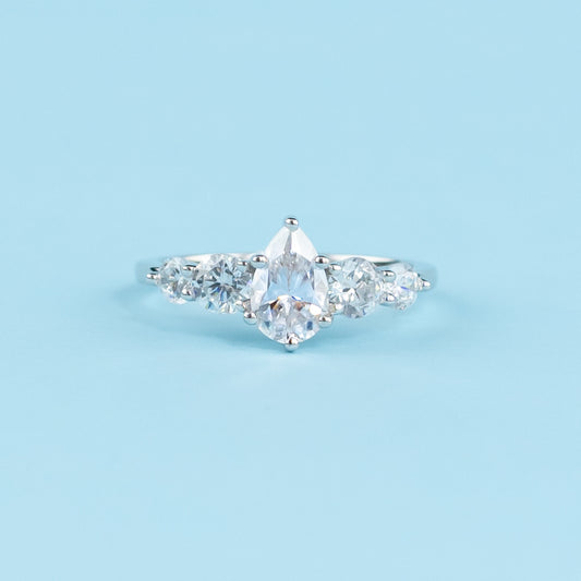 Eternal Brilliance Five-Stone Pear Shape Moissanite Engagement Ring Set in 9ct White Gold