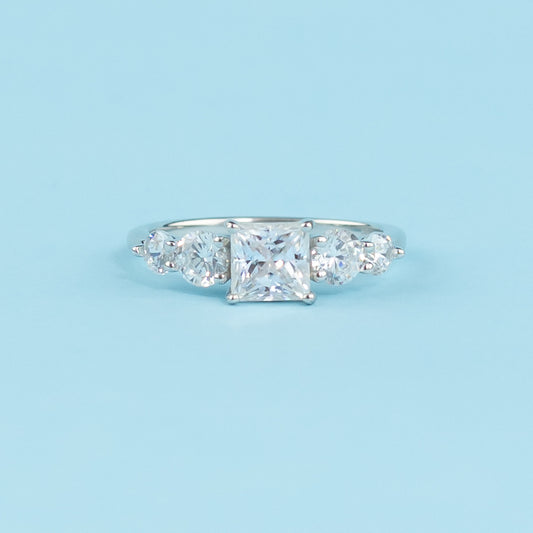 Eternal Brilliance Five-Stone Princess Cut Moissanite Engagement Ring Set in 9ct White Gold