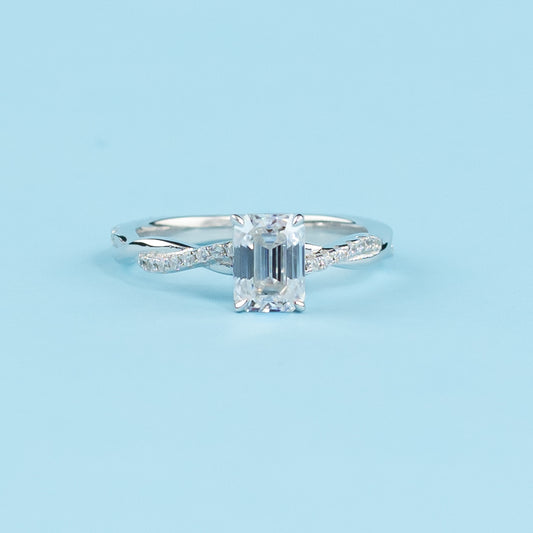 Timeless Infinity Emerald Cut Moissanite Engagement Ring Set in 9ct White Gold