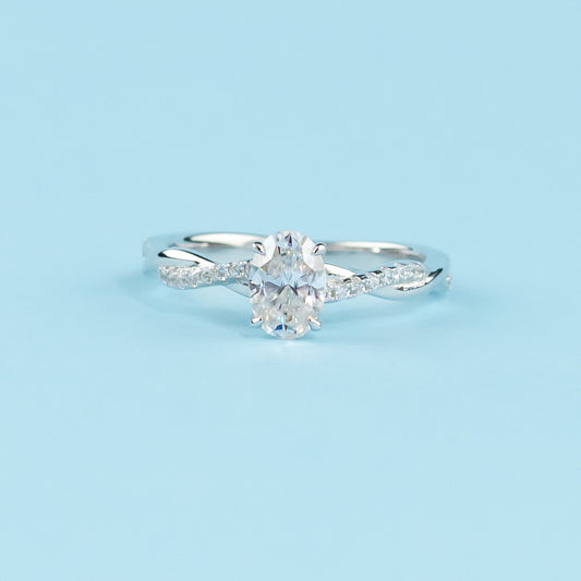 Timeless Infinity Oval Cut Moissanite Engagement Ring Set in 9ct White Gold