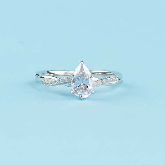 Timeless Infinity Pear Shape Moissanite Engagement Ring Set in 9ct White Gold