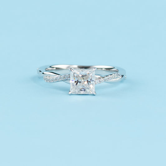 Timeless Infinity Princess Cut Moissanite Engagement Ring Set in 9ct White Gold