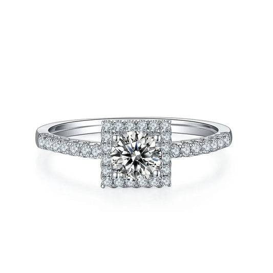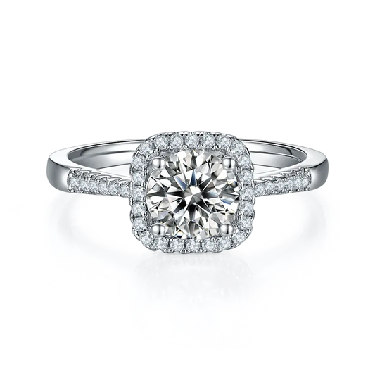 Elegant Halo 1.00ct Moissanite Engagement Ring Set in Sterling Silver