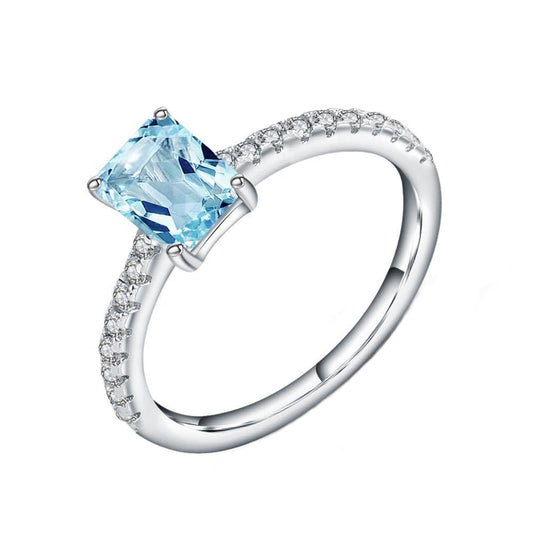 Exquisite Blue Topaz Ring - Emerald Cut