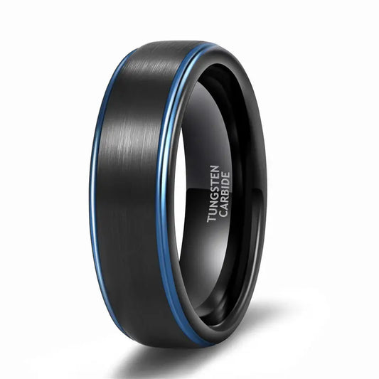 Black Brushed Tungsten Carbide Ring With Blue Centre Groove