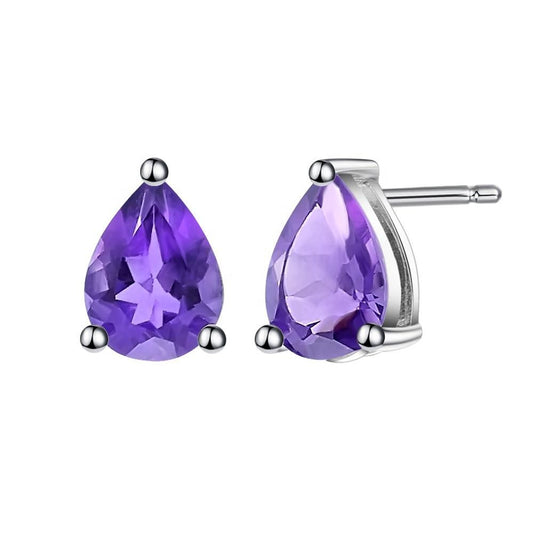 Amethyst Solitaire Earrings - Pear Shape (Leadtime of 5 weeks)