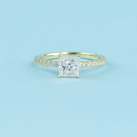 Hidden Elegance Princess Cut Moissanite Engagement Ring - 18ct Yellow Gold Plated