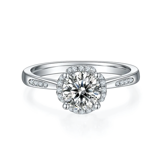 Modern Halo 1.00ct Moissanite Engagement Ring Set in Sterling Silver - BLACKFRIDAY