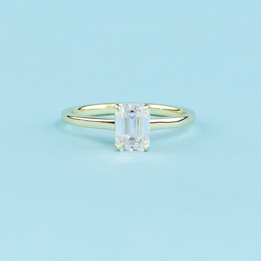 Secret Sparkle Hidden Halo Emerald Cut Moissanite Engagement Ring - 18ct Yellow Gold Plated