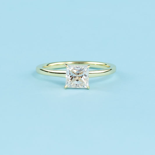 Secret Sparkle Hidden Halo Princess Cut Moissanite Engagement Ring - 18ct Yellow Gold Plated