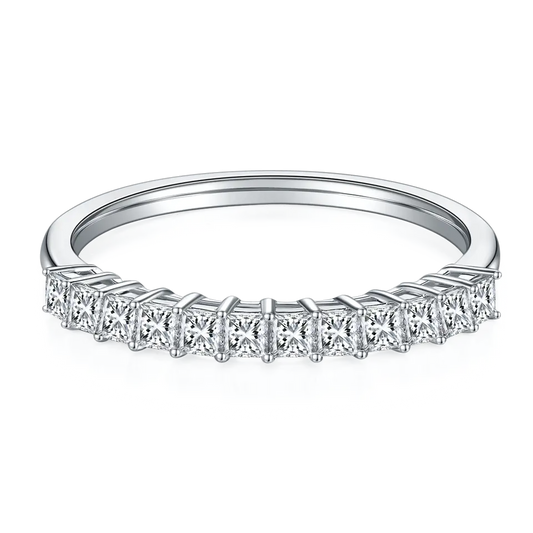 Square Brilliant Moissanite Half Eternity Wedding Band Set in Sterling Silver
