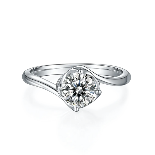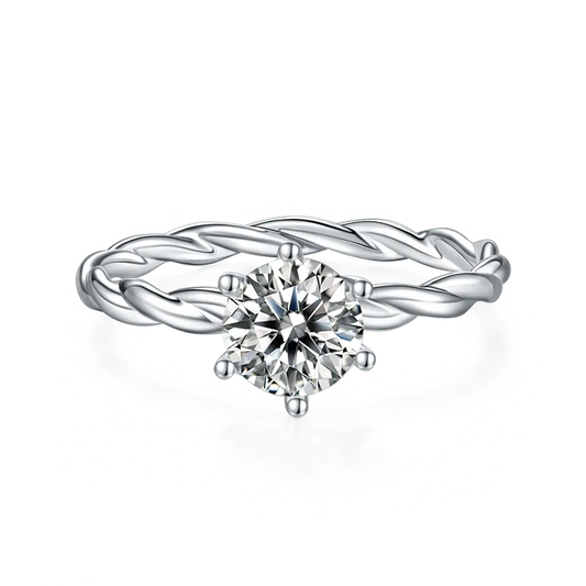 Twist Shank Solitaire 1.00ct Moissanite Engagement Ring Set in Sterling Silver - BLACKFRIDAY