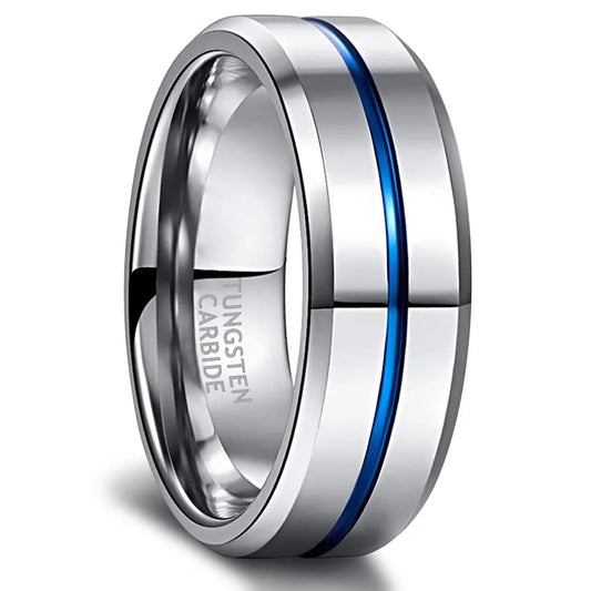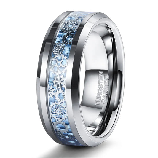 Two Tone Silver and Blue Tungsten Carbide Ring