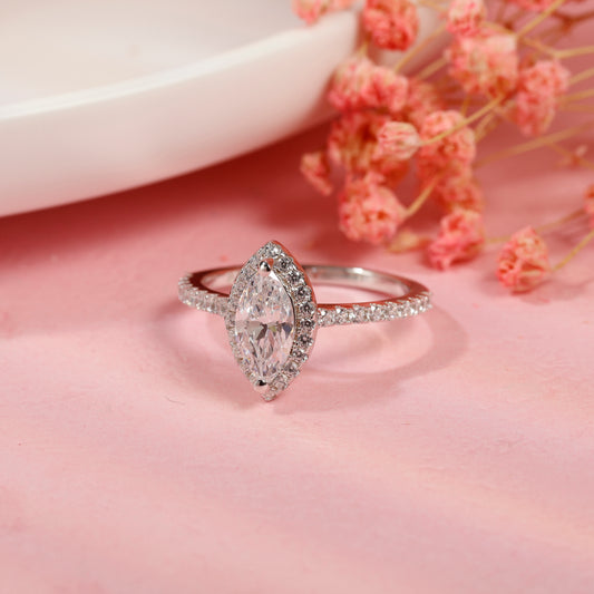 Marquise Halo 1.00ct Moissanite Engagement Ring Set in Sterling Silver - BLACKFRIDAY