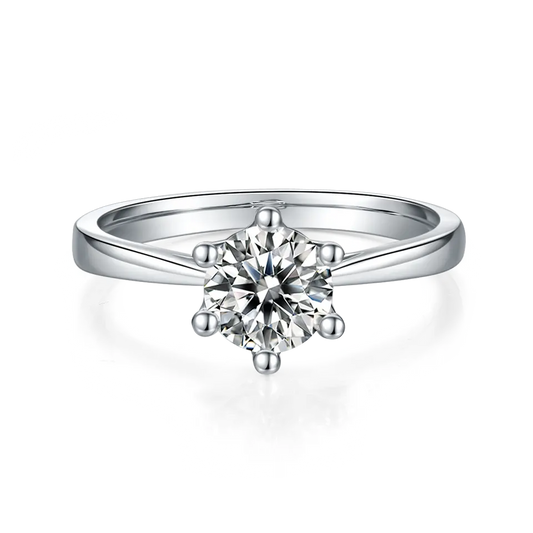Solitaire 6 Claw Floral Basket 1.00ct Moissanite Engagement Ring Set in Sterling Silver - BLACKFRIDAY